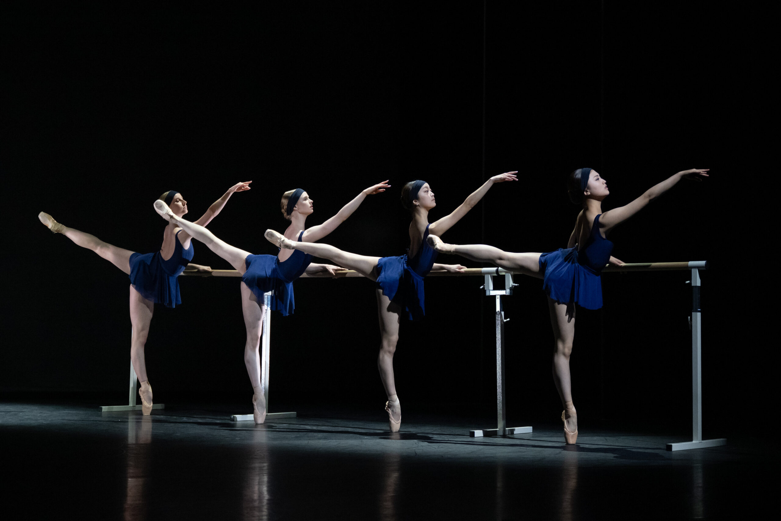“The visuals were chic and minimal, four dancers in blue beautifully synchronised at the barre but the movement was classical and meticulous with a combination of careful pliés and extensions.” London Theatre Reviews